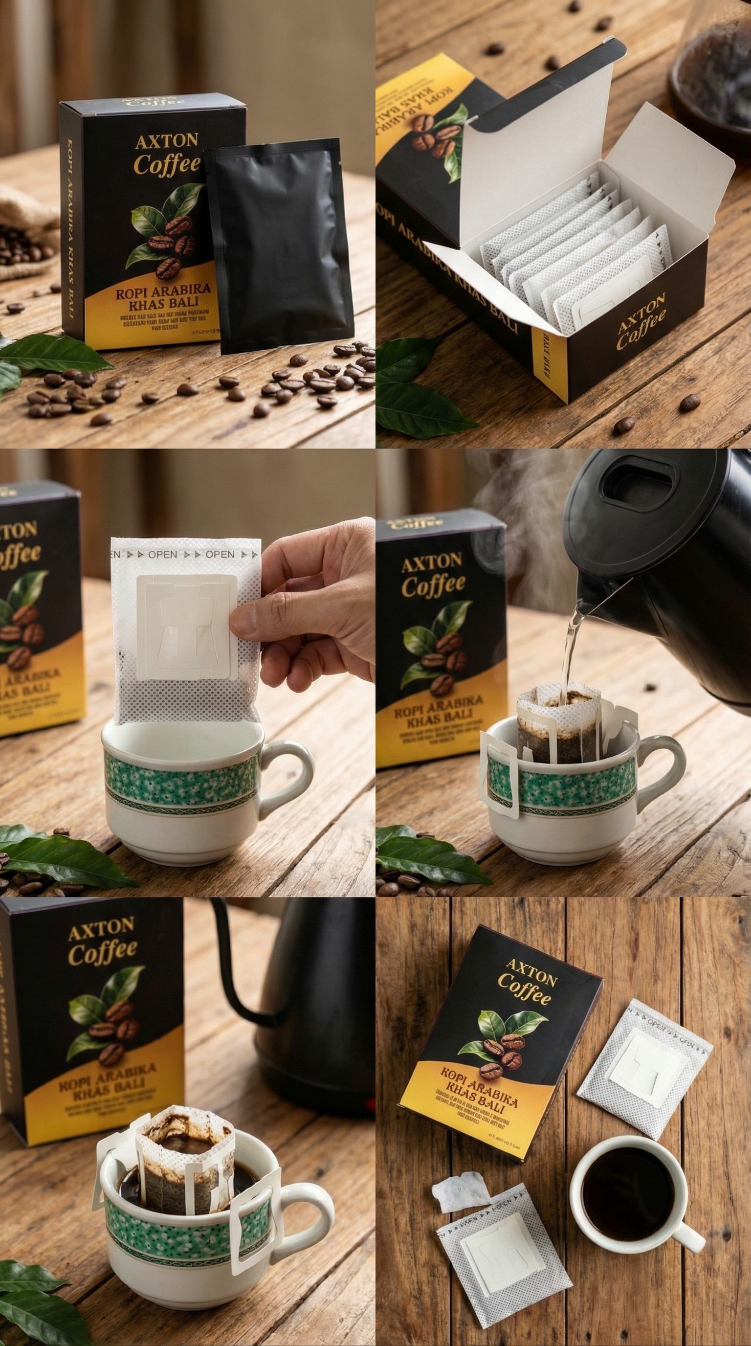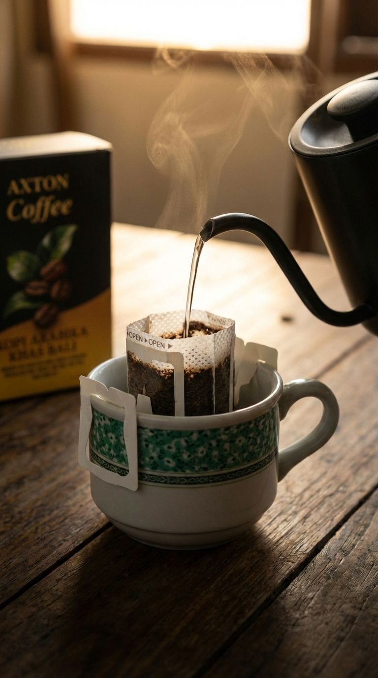 Kami menghadirkan kualitas kopi specialty dalam format drip bag yang memudahkan Anda menikmati kesegaran Axton Coffee kapan saja dan di mana saja.